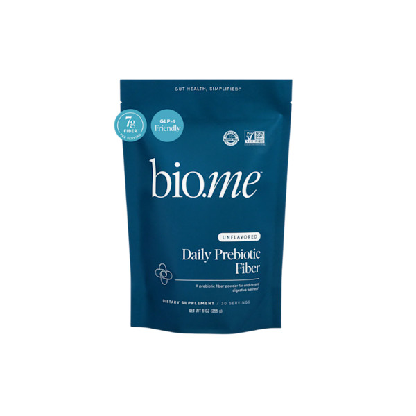 Take Bio.me's prebiotic powder daily to nourish and support gut health and promote nutrient absorption.Improves gut microbiome balance. Helps reduce occasional bloating, gas and indigestion. Supports skin clarity and sensitivity. An easy way to meet your body's daily fiber needs. 30 servings.