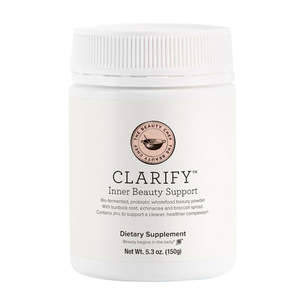 Designed for people prone to skin congestion and breakouts, this clarifying formula contains nutrients that synergistically support a clearer, healthier and smoother complexion. Including herbal ingredients broccoli sprout, burdock, dandelion and echinacea, this delicious bio-fermented blend also contains probiotics and digestive enzymes for gut health. With provitamin A to support cellular turnover, vitamin B5 to support hormonal metabolism and zinc which assists in wound healing–for resilient, clear and healthy skin.