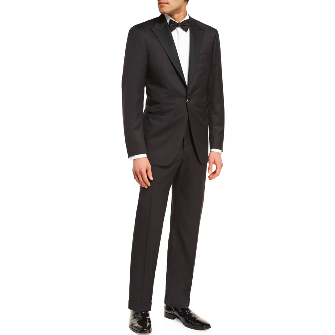 AMELIE: Carolina Herrera Dress; David Yurman Earrings; Tiffany+ Co. Ring; BLAKE: Brunello Cucinelli Tuxedo, Shirt, and Bowtie; Kenneth Cole Shoes.