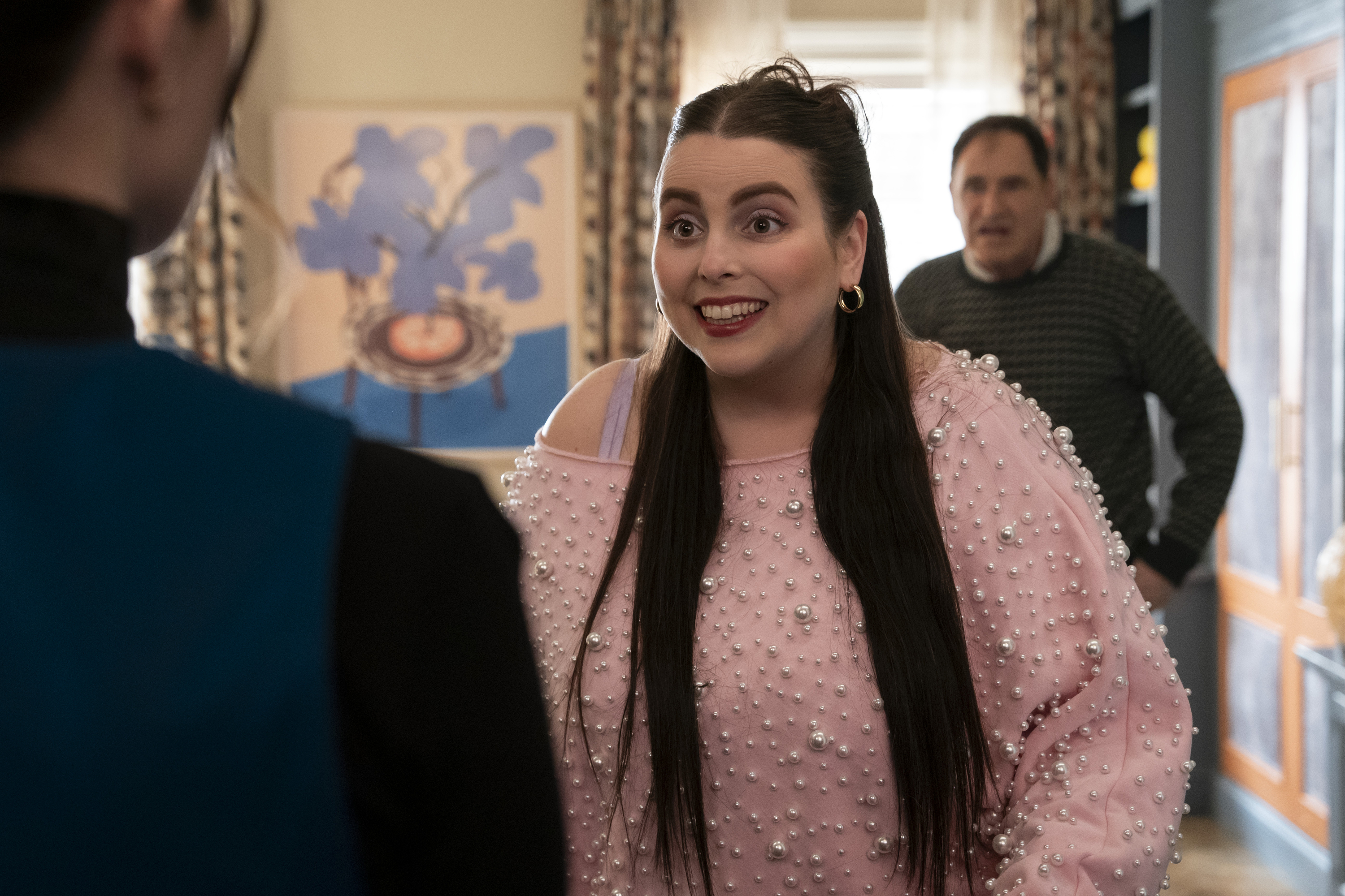 BF: I'm giggling because I have this joke with myself. In almost every project I've ever done, I have to dance. I'm laughing about the fact that dancing wasn't included in your question. I always end up dancing and I love to dance. I would never consider myself a dancer. Obviously when I do Broadway...then there was Booksmart...I guess I didn't dance in Impeachment...I had to dance a tiny bit in Only Murders.. It always ends up with, 'Beanie, we're bringing in a choreographer'. There always ends up being a dance sequence. Dancing is a big part of who I am too, and it kind of seems to be a thing that won't get away from me. I'm so glad, because I find it so fun and so challenging. I will always love musical theater. I think it was my first love. My only love before Bon was musical theater; because it was so core to my identity. I don't think that it was something that could last forever in that way, because you grow up and you fall in love with people, you fall in love with friends, you fall in love with other parts of who you are---but it was kind of the first thing that I claimed as just mine. No one else in my family did it, and it was my special little safe place. I'll always sing, I'm so lucky to be a part of this incredible project, playing Mary in Merrily We Roll Along. Much like dancing, it's something that always pulls me back. I will never not sing, but I do find it to be much more anxiety-inducing than acting. Acting is really freeing to me. I am my most spontaneous. I'm very type-A in life. I'm a planner and I want to be in control as much as I can. When I'm on set, I feel loose and free, and it's where I can express myself differently.