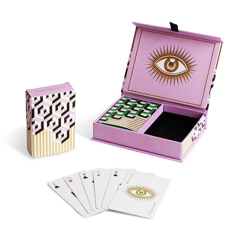 We're spending most of our time at home and many of us have discovered new hobbies. Maybe we're playing with puzzles. Or binging on board games . Playing cards, packages of pieces; we're constantly cleaning the clutter. Piles of papers, computers, and cords litter the living room. And all the mess made from a week's worth of at-home culinary creations? Well, that just adds to the task of keeping things tidy. Lately, we've noticed an array of brands who have taken to elevating the otherwise every-day gaggle of games by making them, well, glamorous. From chess and tic tac toe in lucite to beautifully embellished sets of cards, the time has come to be above board---with the proper way to play.