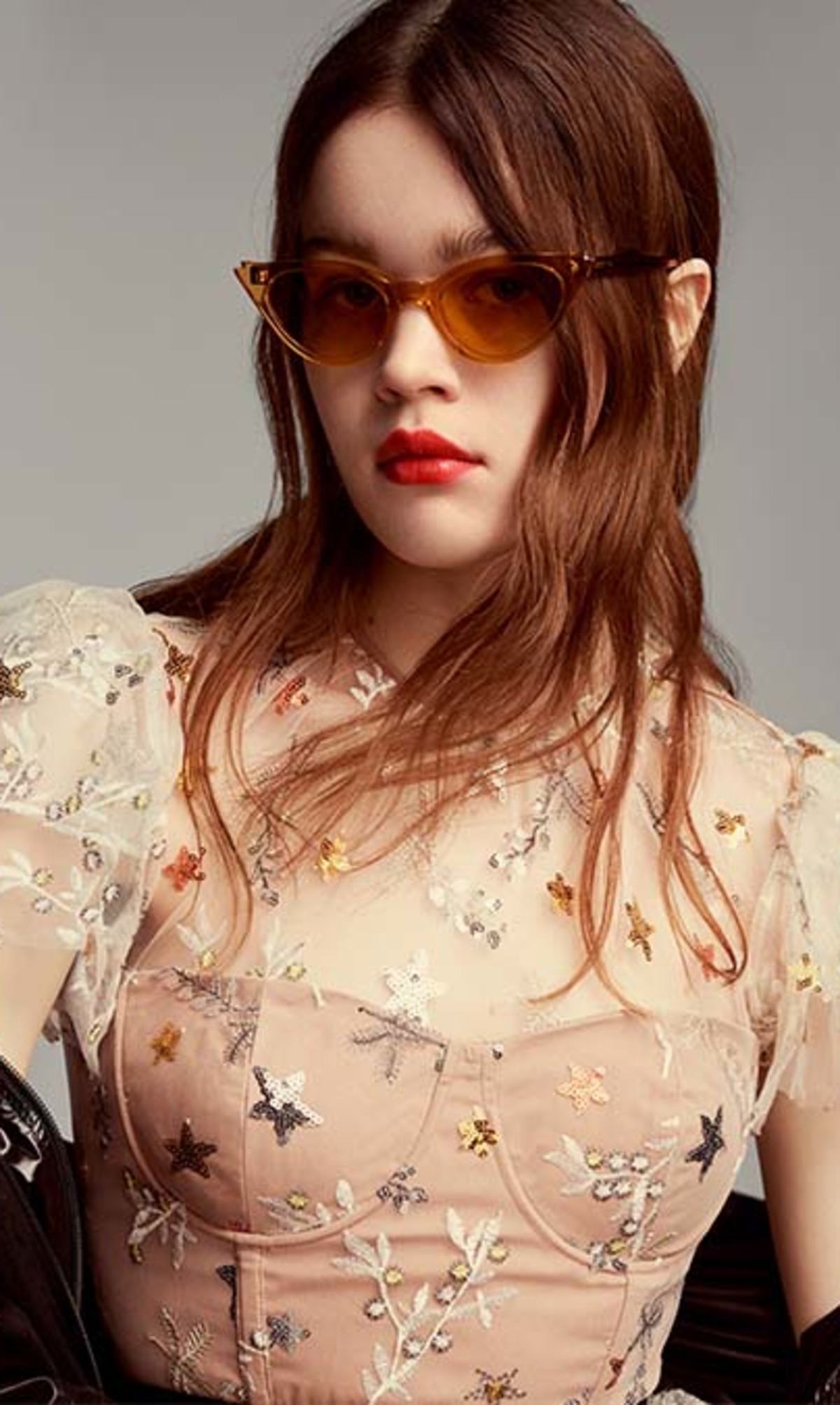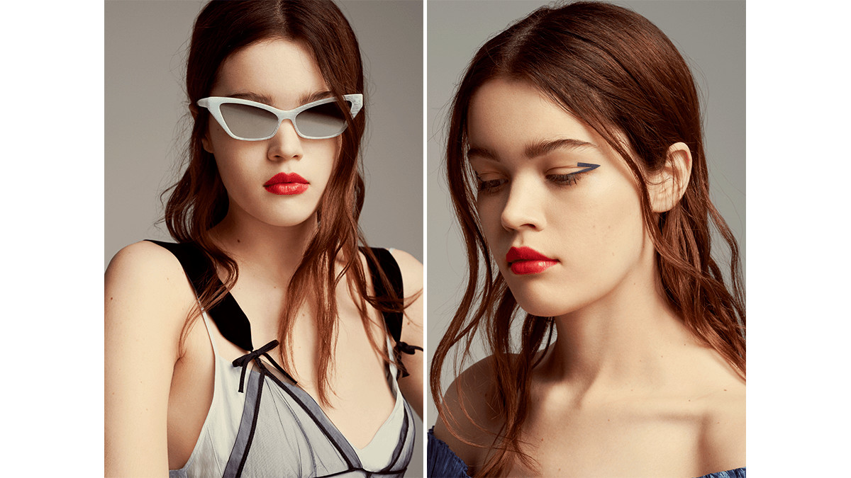 This season, it's all about mini cat eye sunglasses. Pair them with juicy lip color, and you've got a dynamic duo to keep you all about face from now until summer. Click the SHOP icon to the right of the spread to discover this selection of feline frames.