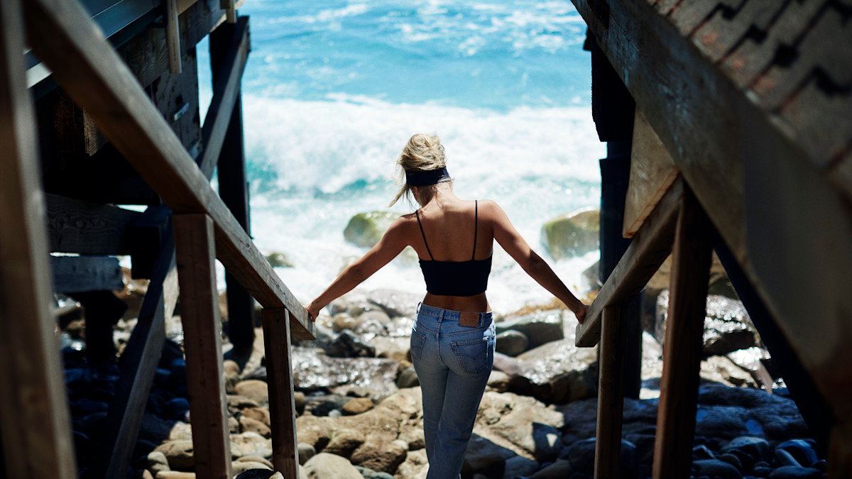 Waves crashing against our a-frame home on the sand, Golden Barbie became Malibu Barbie, stepping into a time capsule and trying on my very own vintage Levi's purchased during the actual decade in which the video made its debut. Hair stylist Ted Gibson crafted his brilliant modern update on Jackson's iconic 'do (which we expect to see on red carpets all of F/W 17-18), and makeup artist Beau Nelson used his flawless expertise to enhance what Jasmine was born with: "that glow" we're all chasing, one that you can make your own all year long simply by watching our tutorial and shopping its key products above.
