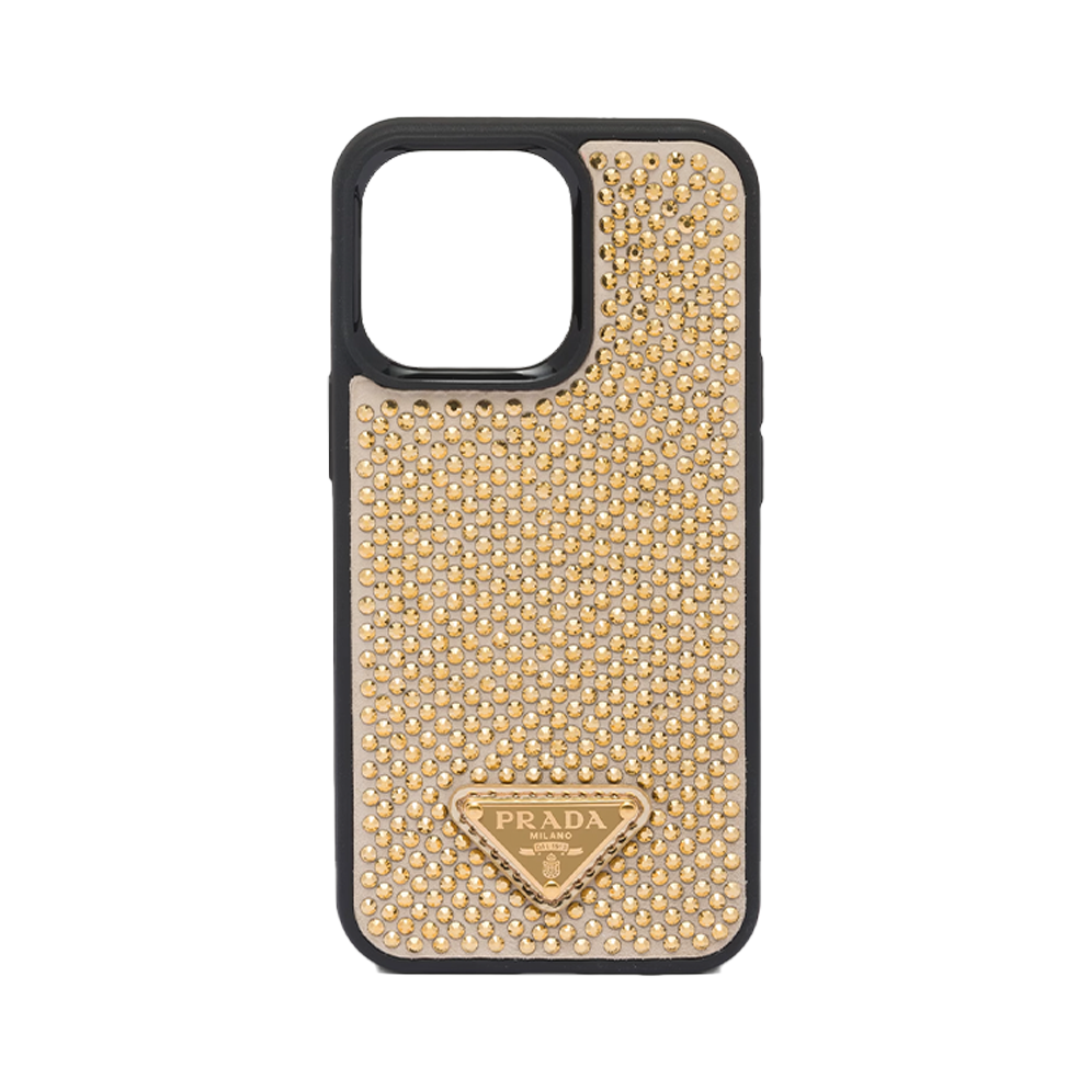 Faceted crystals cover this cover for the iPhone, along with Prada's iconic enameled metal triangle logo, which first appeared in 1913 on trunks designed by Mario Prada. A blinged out case our founder fell in love with at Prada in Rome.