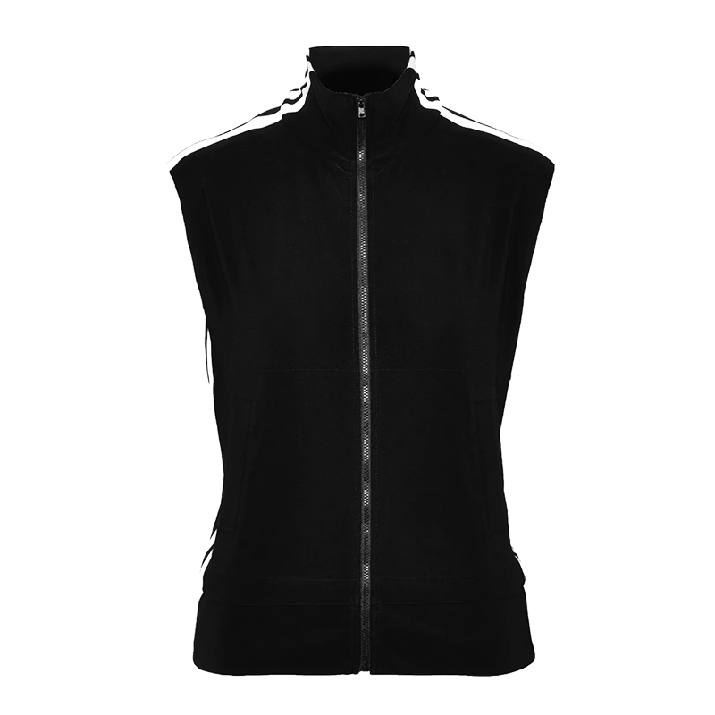 Stretch-jersey vest with seam stripes and raw-cut trims. Zip fastening.