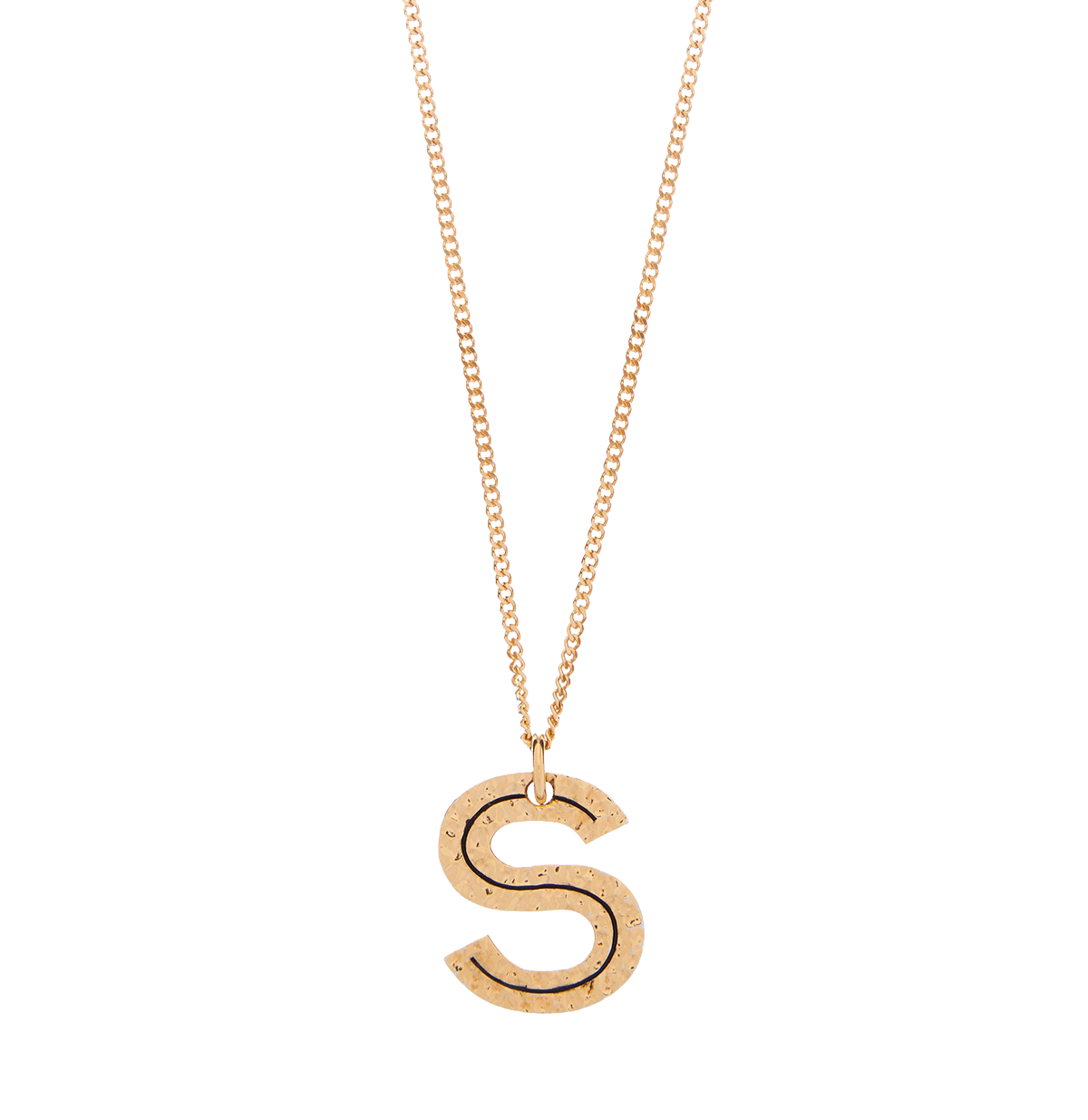 A dainty chain necklace in gold-plated bronze, adorned with an alphabet charm with a textured, hammered effect. Chain length: 60cm/23.6in Charm: 2.5 x 3cm/1 x 1.2in