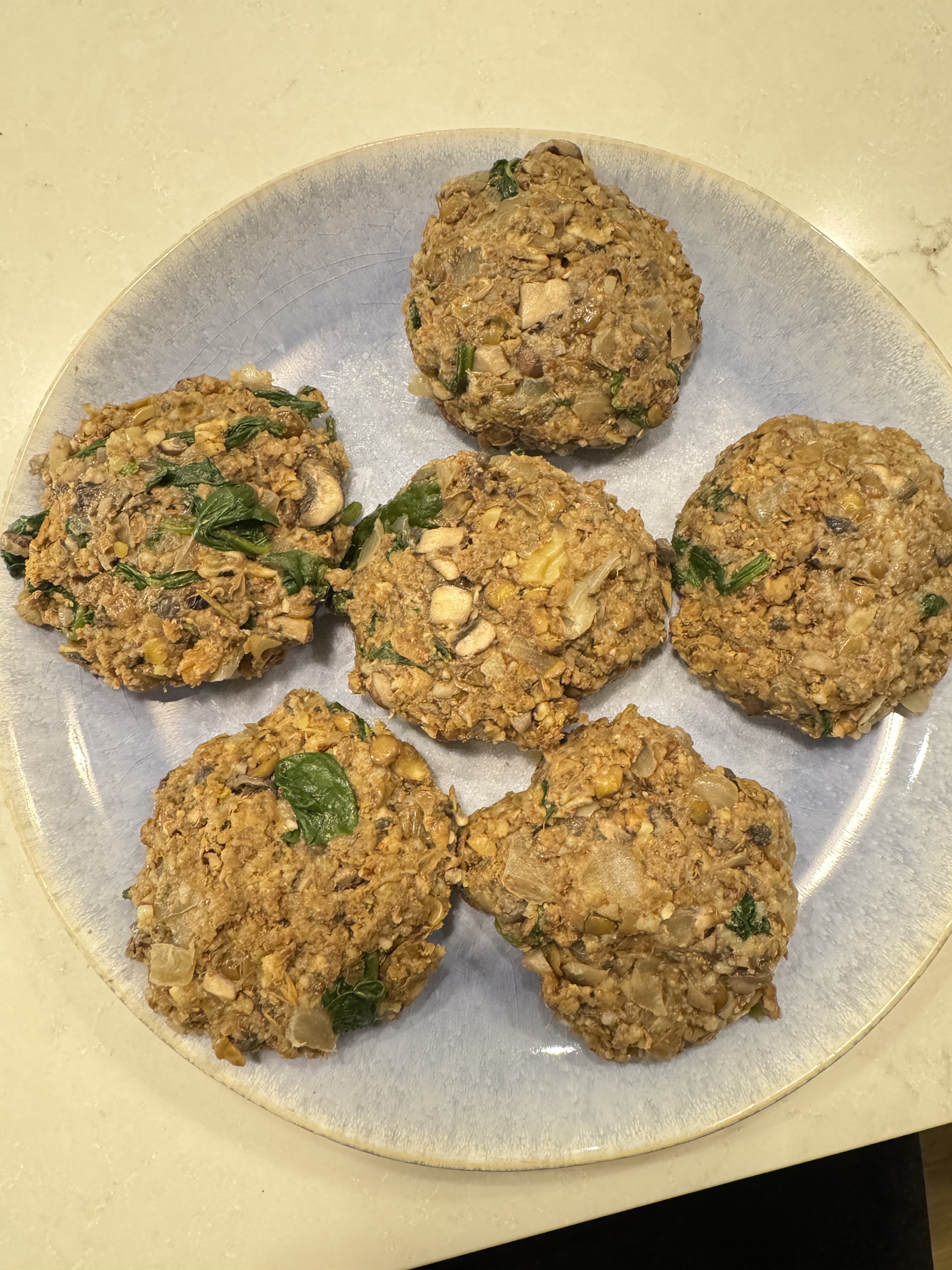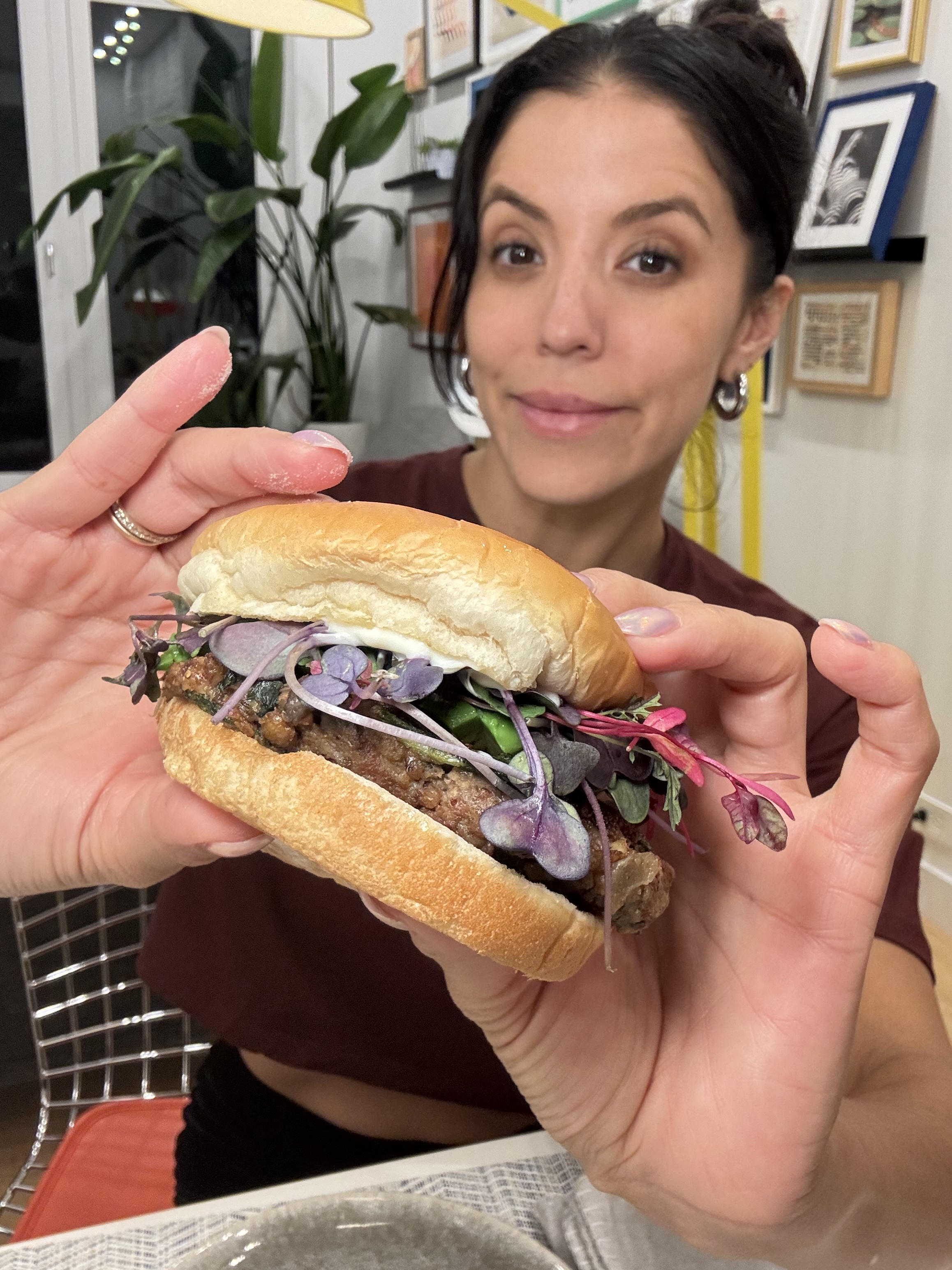 Scott Jurek is an incredible vegan ultrarunner that I have followed for a long time. This burger recipe is from his New York Times Bestselling book, Eat + Run. My husband and I like to make two for dinner, then individually wrap and freeze the rest of our uncooked patties so we can pull them out for something quick and delicious. I usually top them with lettuce, avocado, and microgreens---with a bit of (lazy) special sauce: ketchup and mayo swirled togetheR, ADDED just for the sake of joy!