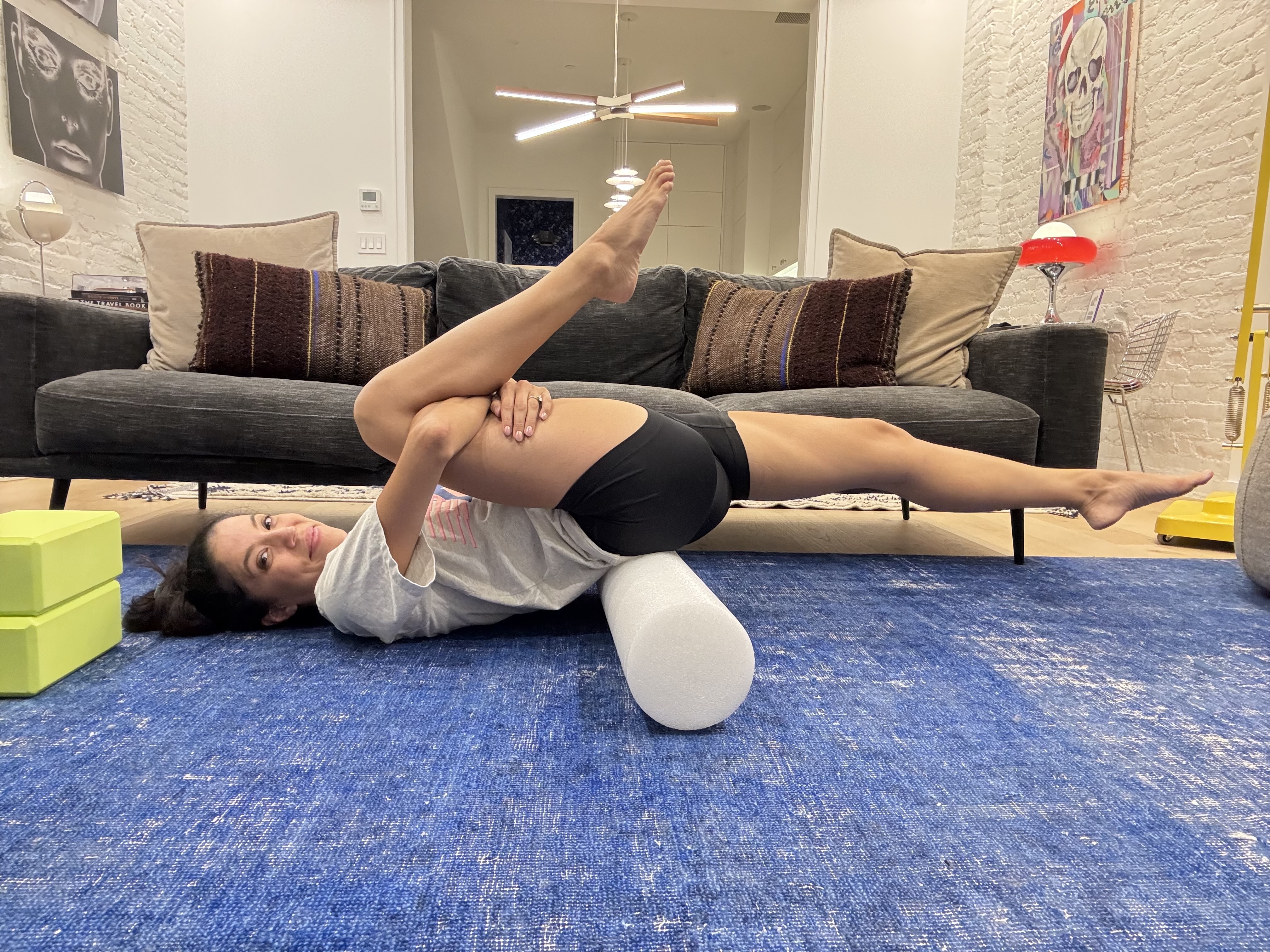 ONE OF MY ALL-TIME FAVORITE RELEASES, this stretch NOT ONLY RELEASES FRONT-OF-HIP TENSION, IT'S GREAT WITH LOWER BACK DISCOMFORT. I had a blast naming the stretches in my Did You Stretch Tho deck. This one was named 'The Life Changer' because it does just that. It will change yo life! It is a front of hip release that uses the foam roller as a prop with no rolling involved. The small area I am helping you target travels from the lower back. Often when people have lower back pain and discomfort, iT's coming from the front of the hiP. releasing that tension is my specialty! You can call it stretching magic if you'd like and me...your stretching witch!