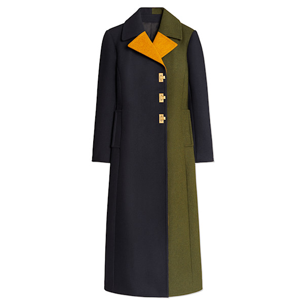 Colorblock doesn’t have to scream “look at me” like it once did in the 80’s. Leave it to Tory Burch to perfectly combine the color block trend with a tasteful and classic coat design. This one’s got the length to work with those long dresses you’ve just purchased, so you’ll be covered from top to toes. Well, almost.