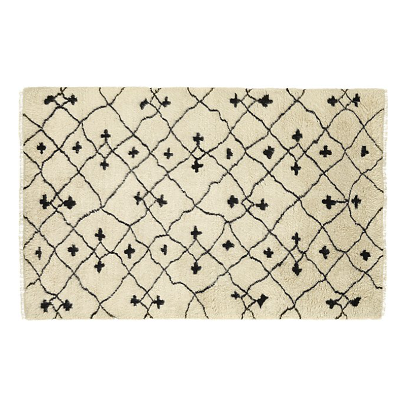 Communion Shag Rug 5'x8'. WHY BUY: Black and white rugs in this style are all the rage right now; this one with cross detailing makes it extra special. Was: $599. Now: $399.