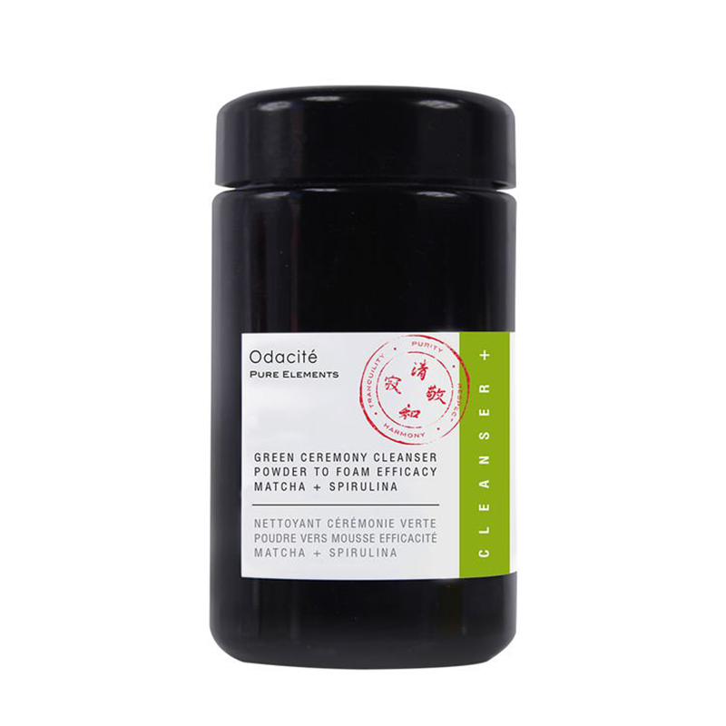 Odacité Green Ceremony Cleanser Powder To Foam Efficacy Matcha + Spirulina. WHY BUY: Remove impurities and add a dose of serious nutrients to your skin with this cleanser packed with matcha and spirulina. It’s powder to foam formula makes it great for travel.