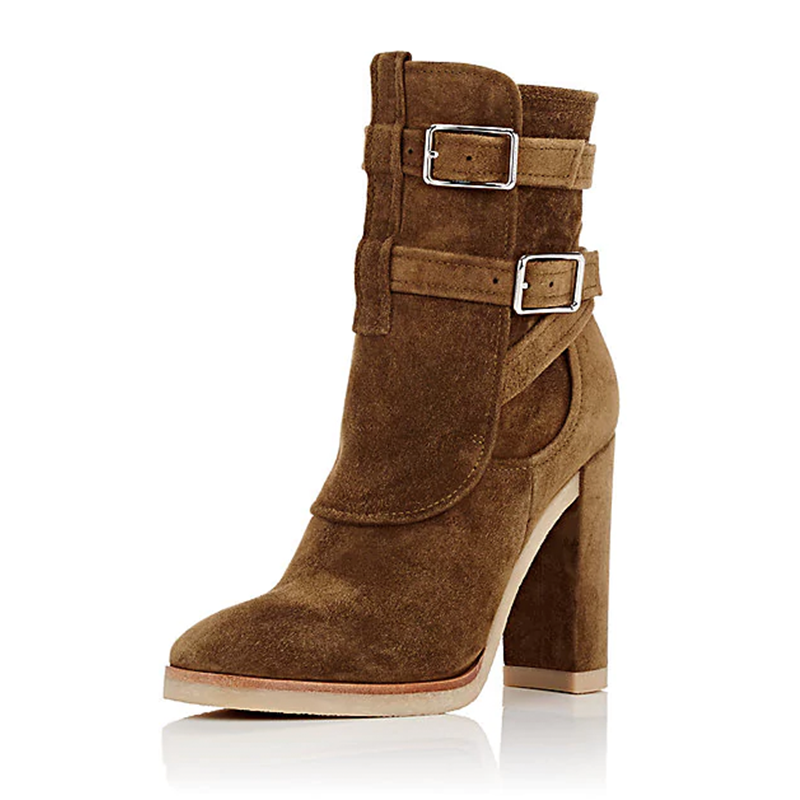 Gianvito Rossi Stormer Ankle Boots. WHY BUY: Available in both brown and navy, this is the kind of go-to style you’ll sport all winter. A rubber platform sole means extra comfort, and dare we say it, a bit of traction in snow. Was: $1,295. Now: $779.