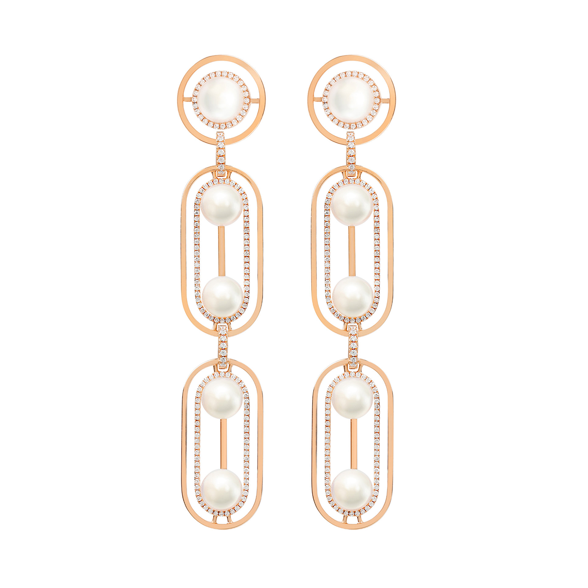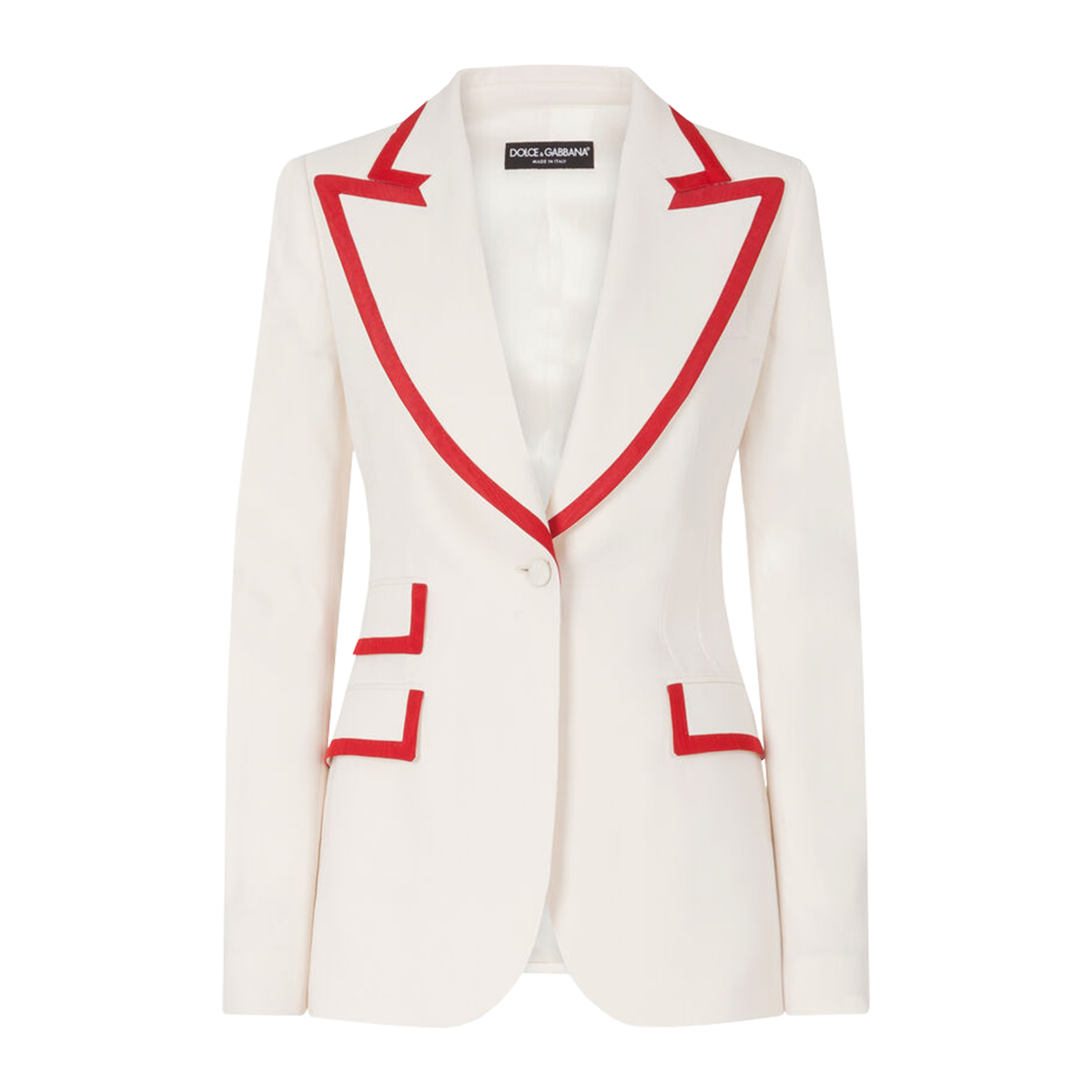 Dolce + Gabbana Blazer and Pants; Agent Provocateur Bra; State Property Ellipsis Drop Earrings; Temple St Clair 18K Double Serpent Ring.