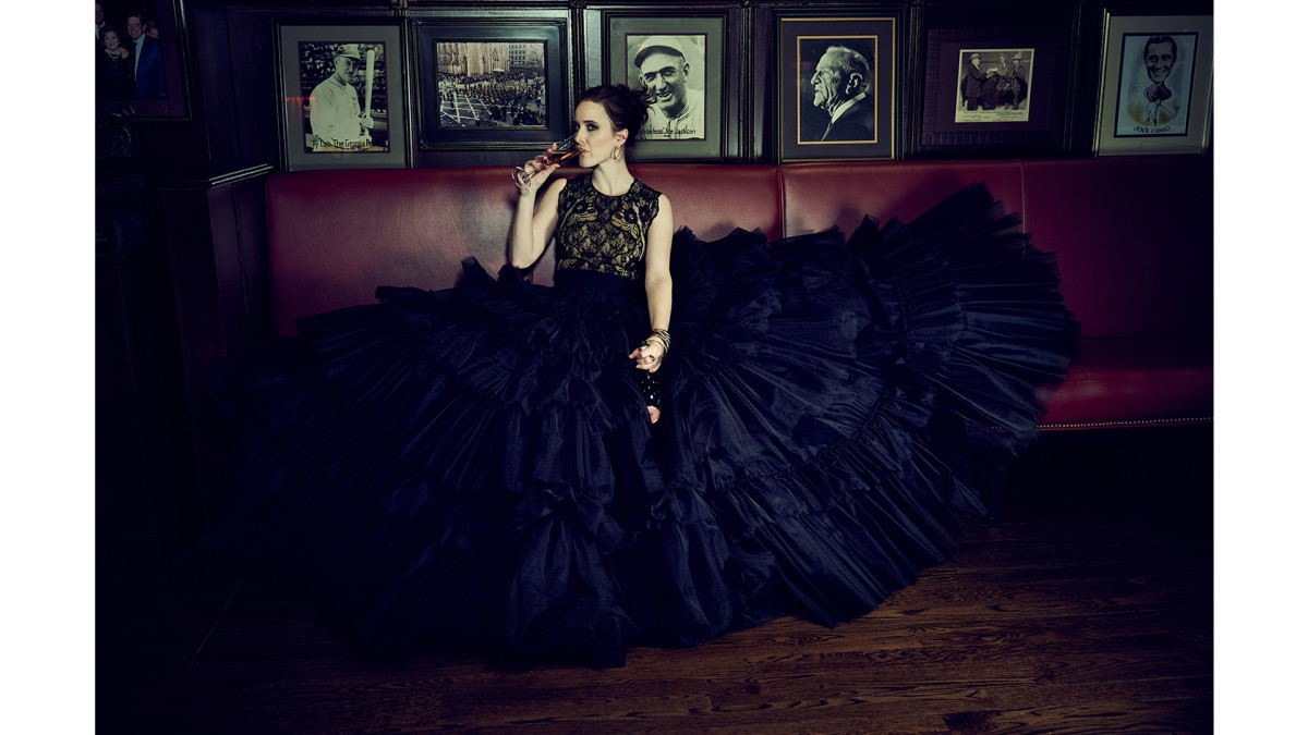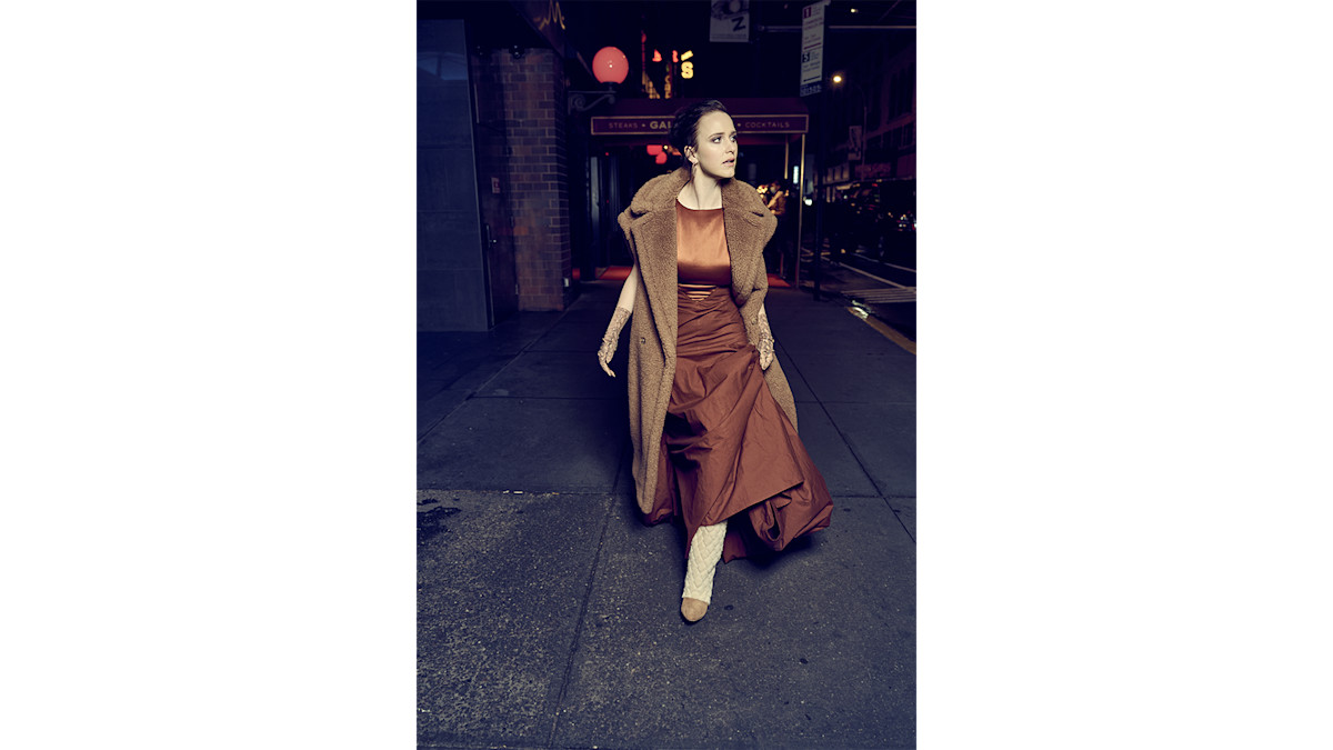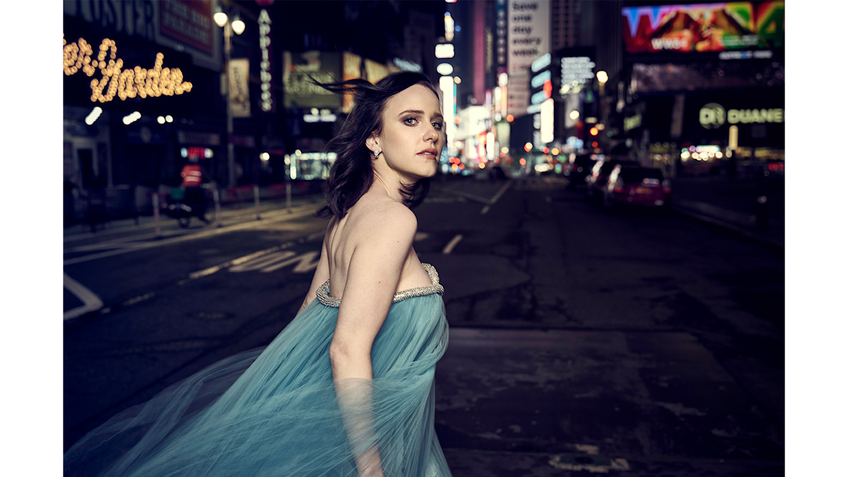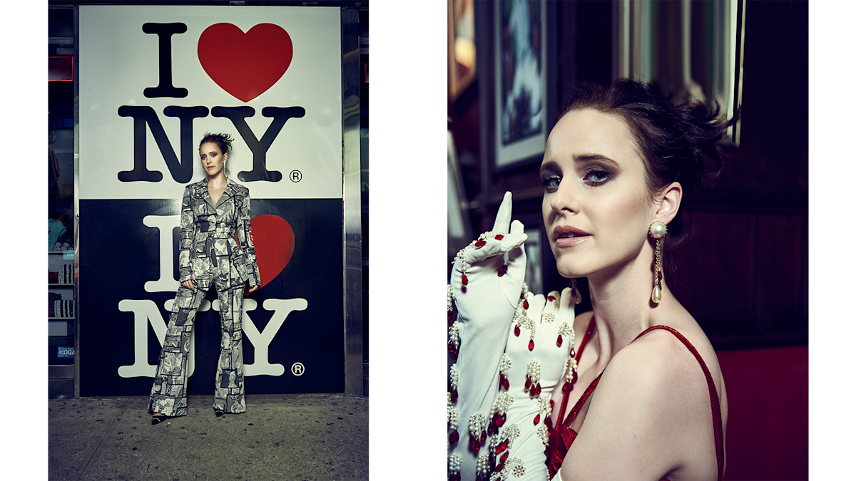 During our photo shoot on a chilly winter evening, Rachel Brosnahan hit the streets surrounding Times Square in New York City and on location at Gallaghers Steakhouse, established over 90 years ago.
