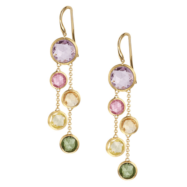 Crafted in hand-engraved 18-karat yellow gold, diamonds, and semi-precious jewels, Italian jewelry designer Marco Bicego is known for creating luxurious and easy-to-wear jewelry. These rainbow earrings are part of the Jaipur Collection and will become an essential part of your wardrobe.