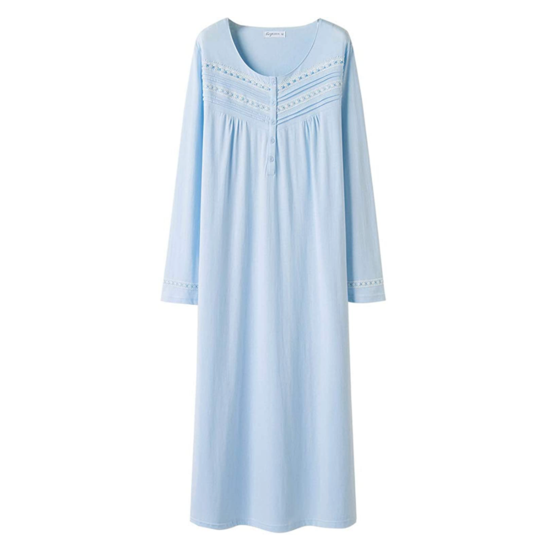 The elegant nightwear features long-sleeve with round neck and button placket. The casual loose comfy fit fit nightdress keeps you comfortable through the night. Non-see-through, not clingy.