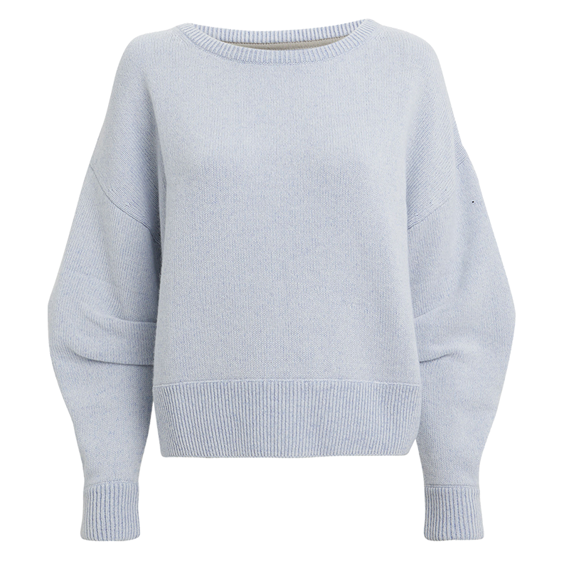 This ultra-soft cashmere sweater in light blue has a relaxed silhouette with dropped shoulders and gathered sleeves. It's like your favorite sweatshirt, but fancier. We love the idea of pairing it with tailored trousers or for an of-the-moment study in contrasts.
