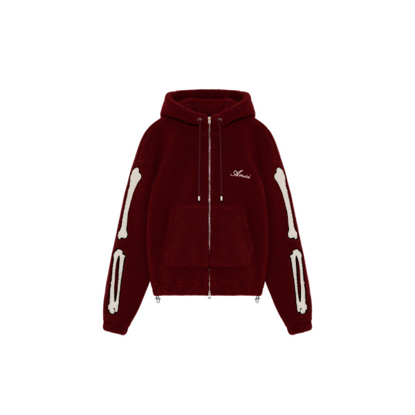 the bones motif is an Amiri signature tracing back to the house's origins in a one-room atelier on L.A.'s iconic Sunset Boulevard. The Bones Fleece Zip Hoodie is embroidered with the house script logo at the chest and finished with a kangaroo pocket, drawcords at the waistband, and double-zip closure.