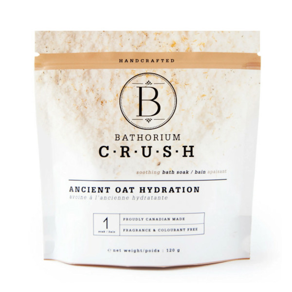 Hydrating Ground Oatmeal, Rice Milk and Warm Vanilla + Lemongrass Oil Bath Soak. Let the warm soothing wrap of vanilla and lemongrass envelop you. Distilled pure chamomile essential oil illuminates the bath in a creamy floral lather. Luscious hydrating rice milks and ground organic oats feed dry skin while calendula flowers release their sweet gift.