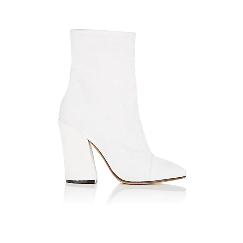 A vintage silhouette meets snowy white velvet. Saturday-night party shoes, done.