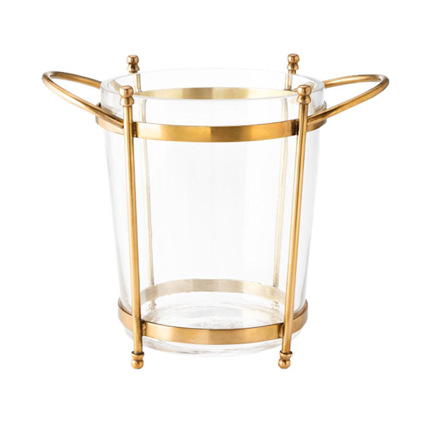 Set the scene for entertaining with the gleaming art deco style of this exquisite ice bucket. The striking glass vessel is set within a footed stainless-steel stand. Defined by the distinctive warmth of antique brass and hand-hammered glass, this ice bucket shines with bold simplicity.