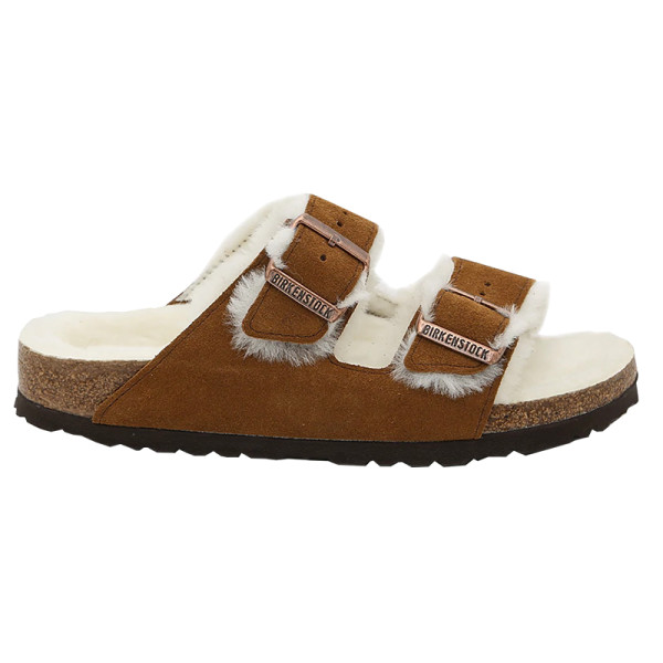 The popular BIRKENSTOCK Arizona is a classic model with two adjustable straps. Featured in genuine high-quality suede – and is now available in an extra cozy version thanks to a soft, bright genuine shearling lining on the anatomically formed cork-latex footbed and straps. These sandals are perfect for chilly, winter evenings.