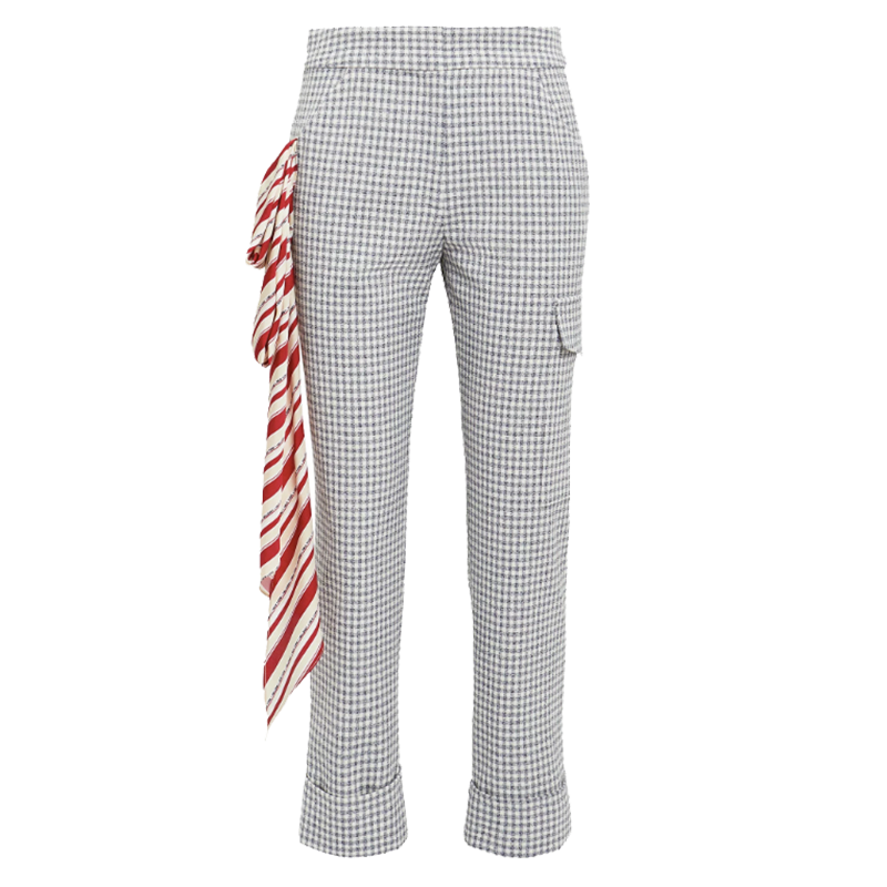 Fashion label Hellesy is known for their unexpected details and elegant minimalism. These checked pants with a red striped scarf hanging at one side and a cargo pocket on the other have us swooning over their laid-back vibe with a fashion-forward twist.