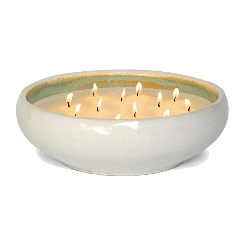For holidays, entertaining, and just because. This multi wick indoor/outdoor candle comes in a beautiful earthenware vessel with touches of color on the inside.