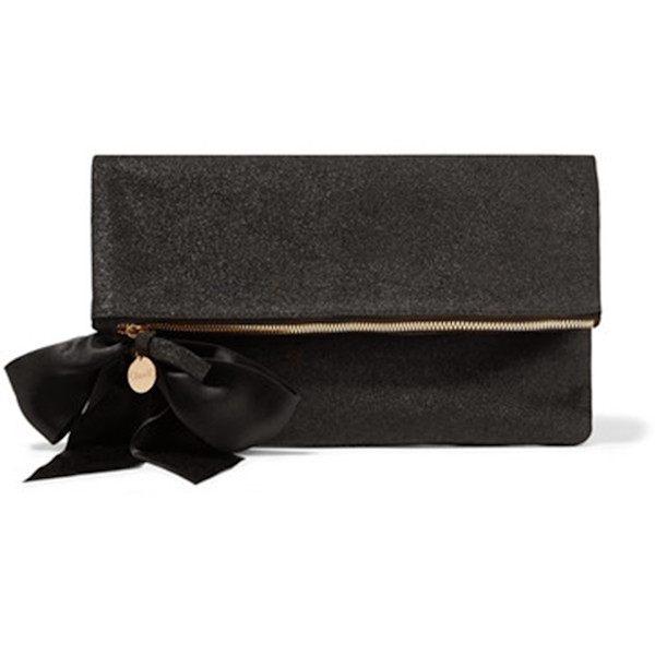 Clare V.'s clutch is perfect for the party season - it'll work with almost any outfit and has plenty of space for your lipstick, cell phone and compact. It's made from glittered black suede and topped with a lustrous satin bow. Although sizable, the fold-over shape is easy to hold in-hand or tuck beneath your arm.