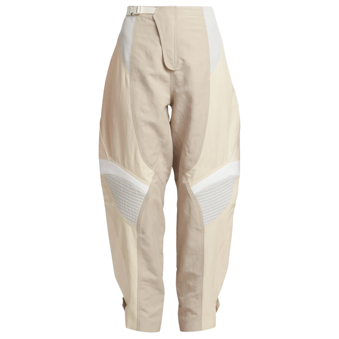 A side-release buckle fastening at the waist, tonal beige panels, and high-waist make a these pants the perfect subtle statement.