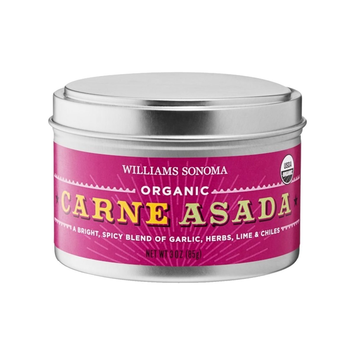 Re-create a sizzling Latin American classic. For authentic regional flavor, Williams Sonoma combines garlic, herbs and lime with three types of chiles, including smoky chipotle, mild New Mexico and spicy jalapeño peppers. It's the perfect partner for beef, pork or chicken. Just rub the blend onto the meat one hour before cooking, then grill or broil as usual.