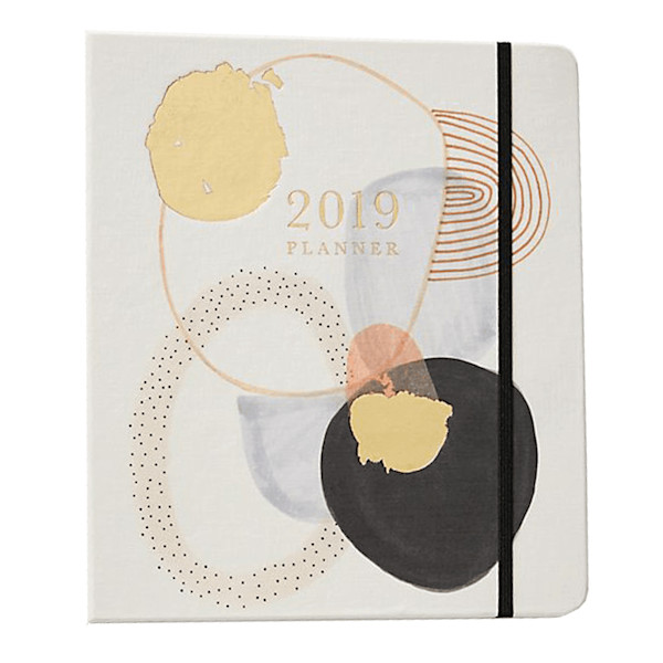 Artist, designer, and illustrator Ashley Mary collaborated with Anthropologie to create this stellar planner. Inspired by “vintage treasures” and “beauty of the natural world,” Mary drew on these themes to produce a planner made of shimmering metallics with a cool celestial feel. Includes monthly and weekly views with goals, budget sections, and an expandable pocket.