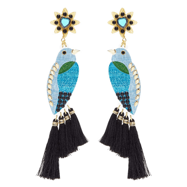 These drop-clip earrings (inspired by the Choco Sucurua Blue Bird) are a bit bohemian, a bit tropical, and totally cool. Blue birds with black tassels are an easy way to incorporate some bold color into your wardrobe and while they’ll certainly make a statement, they’re also surprisingly versatile.