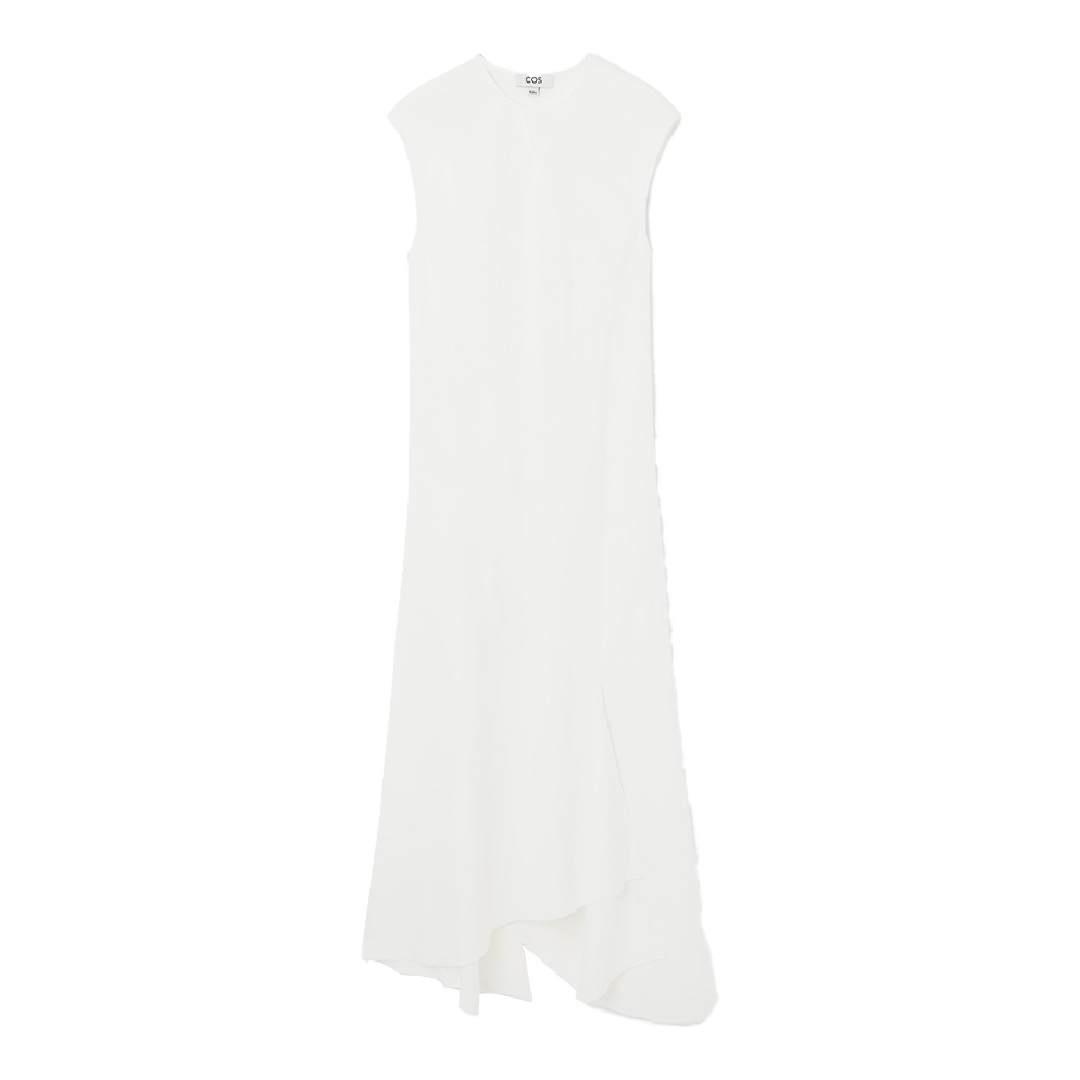 Crafted from a floaty European flax blend and cut on the bias with a cowl neckline, this breezy dress is a spring and summer staple. Asymmetric hem, delicate picot trim.