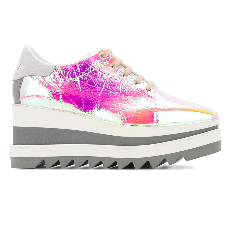 These multi-tone platform shoes in a colorful iridescence are part of the chunky sneaker look every fashion girl is embracing right now. Pair with dresses and skirts for standout style.