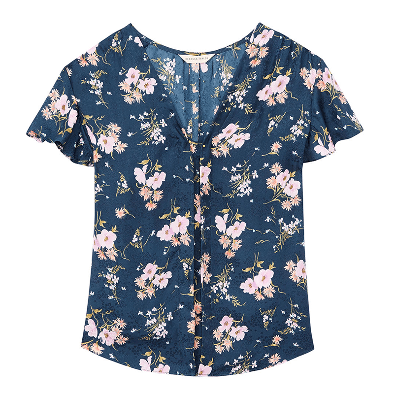 A whimsical wildflower print on a silk jacquard top, this has the style starter power your wardrobe’s been missing. With fluttery sleeves, a front pleat, and a V neckline, this top will take you from summer to fall (and even to winter when layered with a turtleneck).