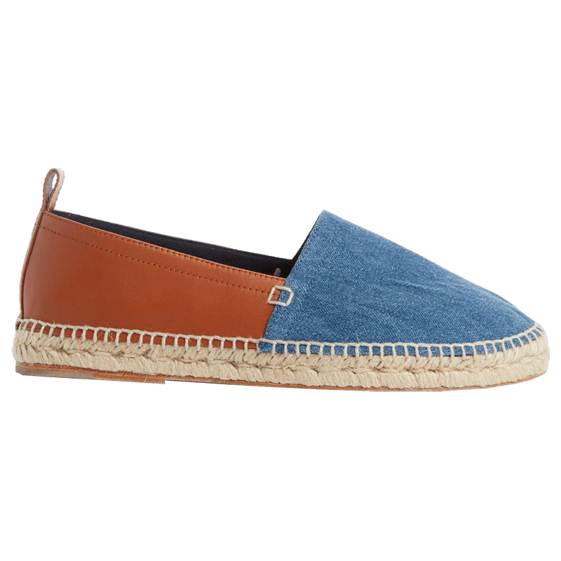 Classic espadrille slip ons offer a fresh twist with two tone styling. Continue on the color block party by pairing with a bright, contrasting color.