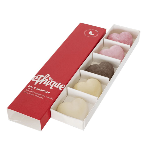 If you want to dip your toe in and try out Ethique's range of face products, the Face Sampler is for you. It contains the following five samples: Bliss Bar, The Perfector, Saving Face Serum, Gingersnap, In Your Face. Each sample weighs between 10-14g giving you ample chance to try each product. The samples come in a chocolate box style package, which is 100% compostable.