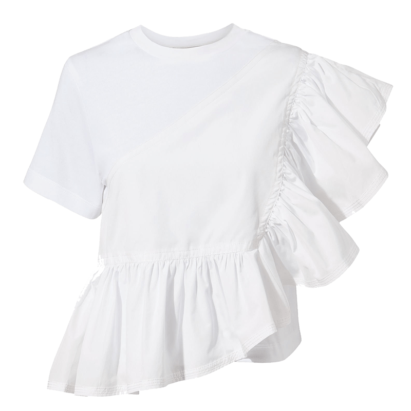 In 100% cotton, Phillip Lim's top is not your average tee. Flamenco style ruffles make a statement pair with anything from denim to your most dressed-up skirt.
