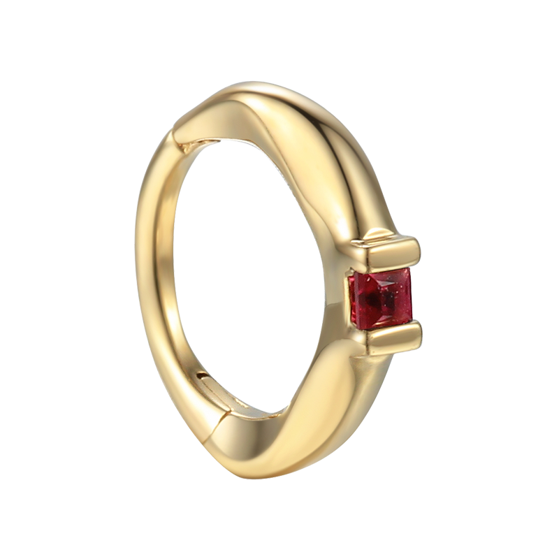 Part of an exclusive collaboration between Pamela Love and Free People, this stunning 14k gold single hoop earring features a floating center stone in either emerald, opal or pink opal.