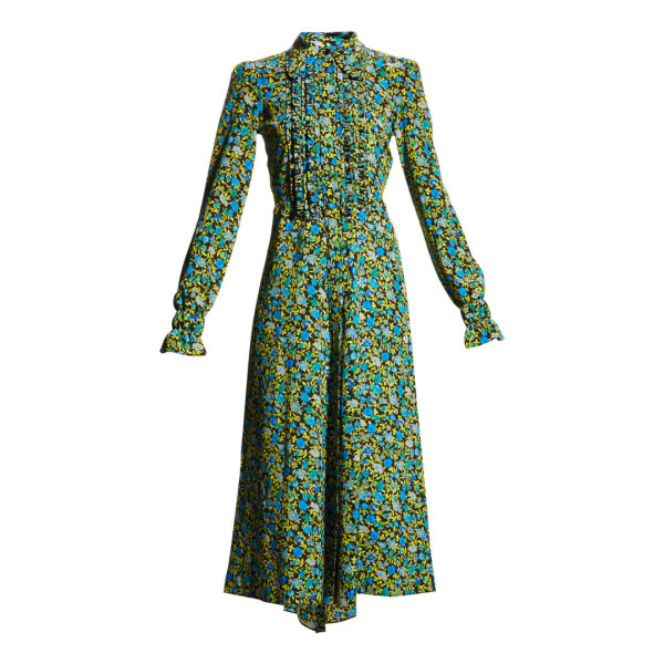 Ruffles and pin tucks cascade down the front bodice of this shirt dress – a nod to the 70s, one of Victoria's favourite decades and a key inspiration for the Pre Spring Summer 2022 collection. Made from 100% silk crepe de chine, it has a classic fit, with shirring at the cuffs, a curved waist seam and an asymmetric hem for a unique finish.