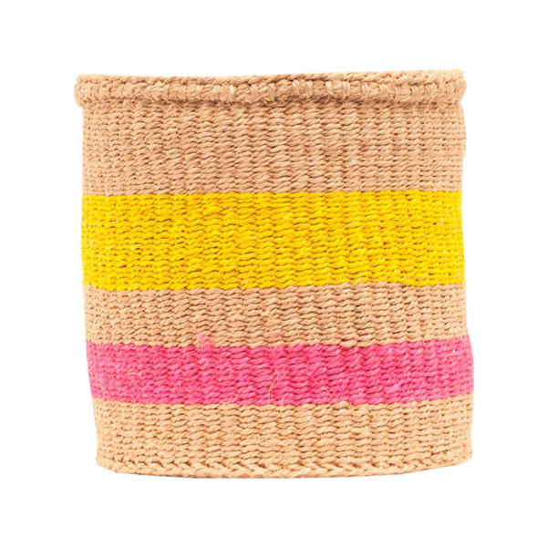 Handwoven and dyed in Kenya, these beautiful pink & yellow striped storage baskets are available in three sizes, all handmade by a women’s weaving cooperative in Kenya. Add a touch of statement colour and design to your home whilst storing your desk accessories, favourite plants and all the nursery bits and bobs. Ethical, practical and one of a kind.