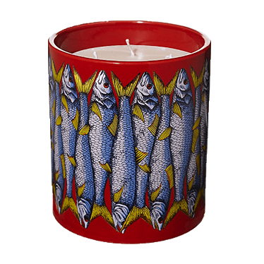Fornasetti's 'Sardine' candle is housed in a handcrafted ceramic vessel that's decorated with Piero Fornasetti's whimsical artwork. The hand-poured wax is fragranced with the brand's signature 'Otto' scent - combining top notes of sweet Lavender with smoky Incense and spicy Thyme and Cedarwood. Fornasetti scented candles are hand-poured in England and made of a vegetal wax blend. This ensures a regular scent diffusion, and a long-lasting and clean burn for up to 60 hours. 67oz
