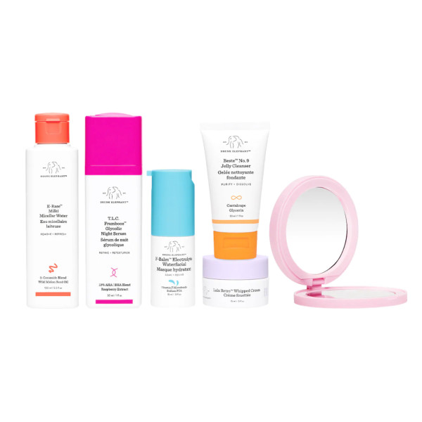 An evening regimen to wash away pollution, remove dead skin cells, hydrate the acid mantle, and strengthen the skin barrier. Wipe off the day’s makeup with E-Rase, and suds away grime and oil with Beste No. 9. Now you’re ready to coddle the skin with the perfect nighttime smoothie of T.L.C. Framboos, Lala, and F-Balm to slough away dead cells, replenish lost electrolytes, restore skin’s acid mantle, and make it as glowy as can be.