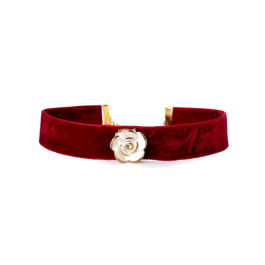 Poporcelain love's giving classic elements a modern makeover for the new season. This choker is finished with a golden porcelain rose and velvet ribbon with a gold-plated extension chain. The rose is hand-painted with gold lustre and decorated with five small sparkling Cubic Zirconia stones.