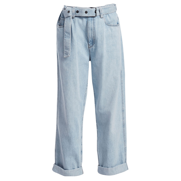 Wide proportions and accessories with a retro flavor define the style of the cotton Soft denim trousers. The fabric belt is characterized by large metal eyelets, a detail which brings to mind the look of classic military styles. Produced in Italy, the fabric offers a compact texture that is also lightweight and comfortable, pairing perfectly with the wide, straight lines of the garment.