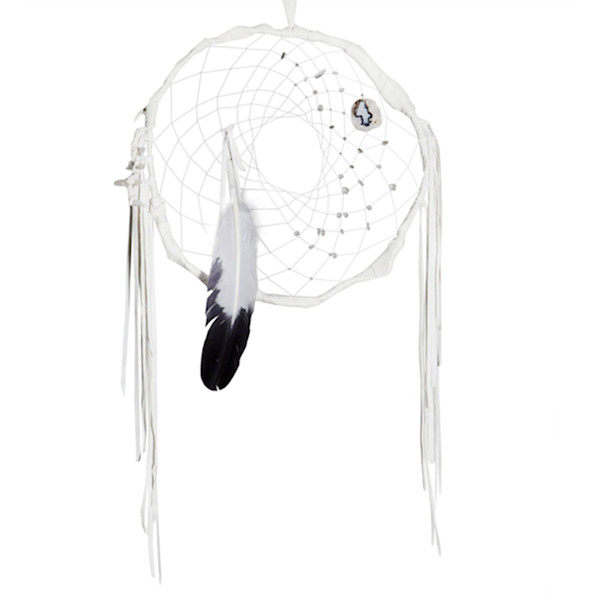 Dreamcatchers are said to collect good energy and promote peaceful dreaming , so make sure your dreams are always sweet with this beautiful handmade dreamcatcher, crafted with soft leather, airy feathers, and powerful crystals, like moonstones, kunzite, and agate.
