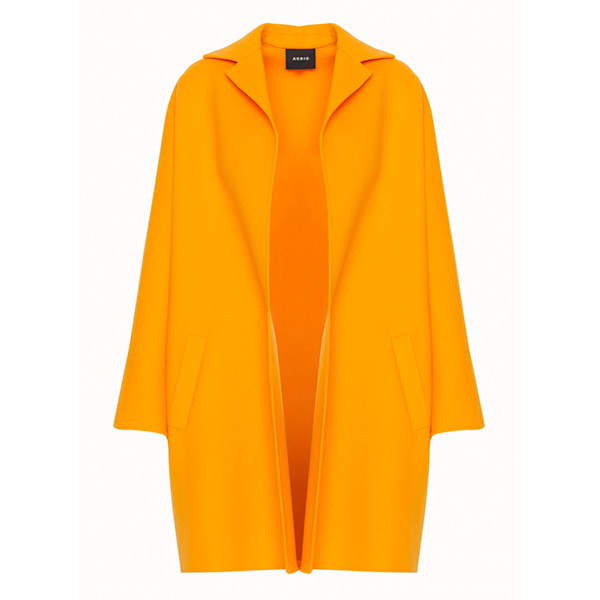 This Akris Harlow oversized cashmere double face coat is simple, streamlined and proves that, sometimes, less is more. Impeccably crafted, this item is cut for a relaxed fit and for easy layering in this vibrant Sunrise tone. It features a lapel collar, kimono sleeve, no closure and side pockets.