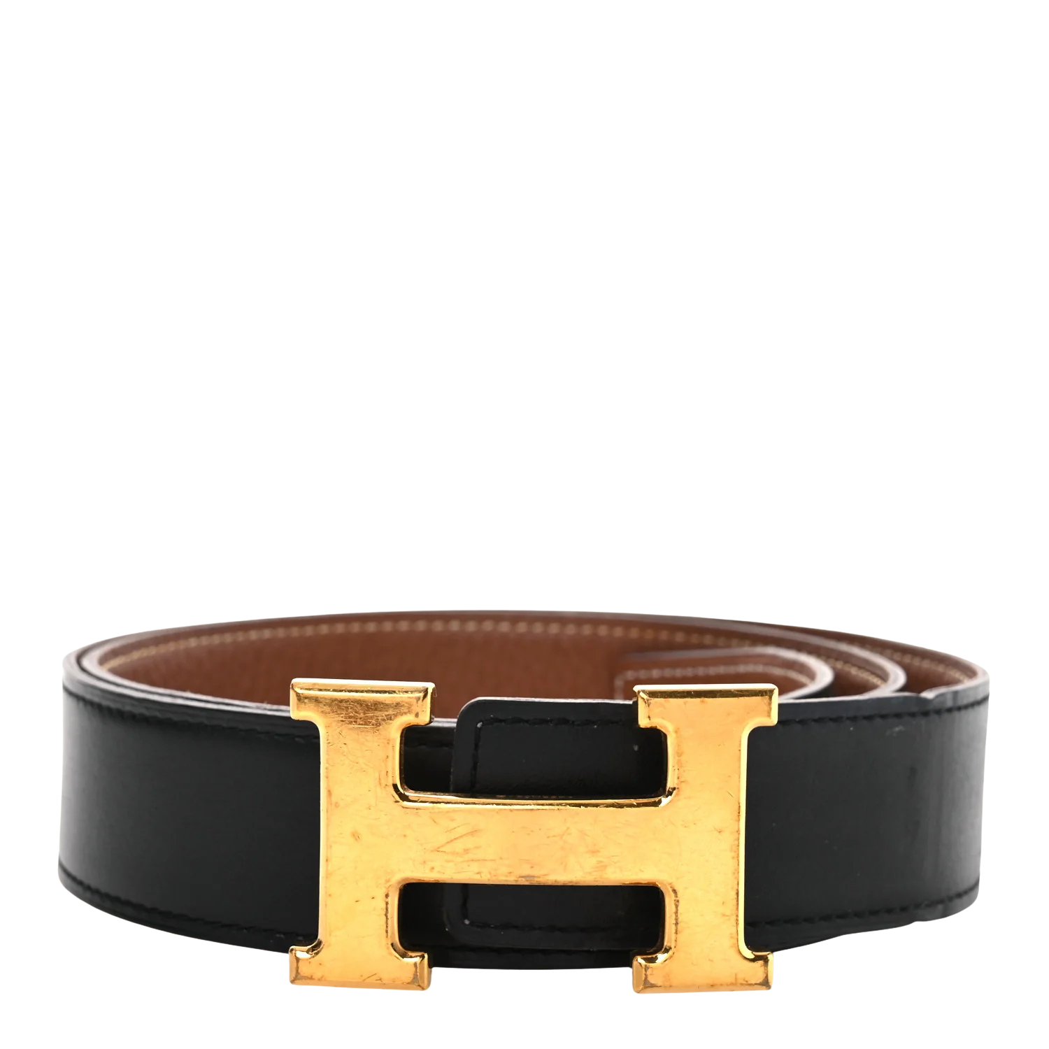 Hermès H Gold Belt Buckle with Reverisble Black Strap