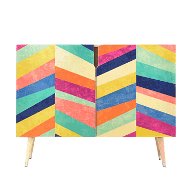 CREDENZA MADE FROM BALTIC BIRCH by Jacqueline Maldonado. ART PRINTED ON CREDENZA DOORS. ULTRA SMOOTH, DURABLE WOOD GRAIN EXTERIOR WITH GLOSS FINISH. NATURAL WOOD GRAIN INTERIOR FINISH. ONE INTERIOR SHELF WITH ADJUSTABLE HEIGHT AND TAPERED WOOD LEGS. 150 LB. WEIGHT LIMIT. CARE: WIPE CLEAN WITH NON-ABRASIVE RAG. CUSTOM MADE IN DENVER, COLORADO. ASSEMBLY REQUIRED. Final Sale.